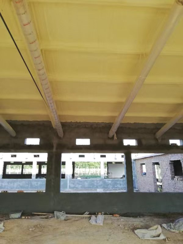1) 基層平整(符合規(guī)范要求),噴涂前,清除基層松動部位、浮灰、污物,堵好腳手眼,安裝好預埋件,基層必須干燥,含水量≤8%。